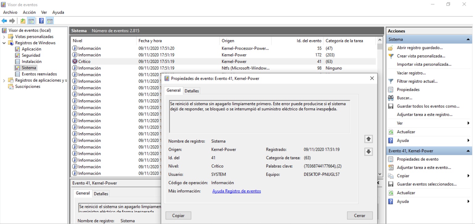 Claro que si el cliente te dice que el ordenador se apaga y el visor de eventos no presenta ningún....