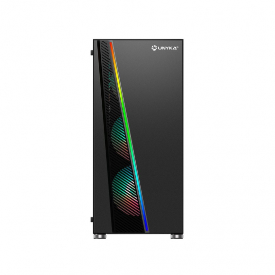 - Franjas RGB: Una franja LED RGB de diseño único en el panel frontal ofrece un look espectacular para tu caja.