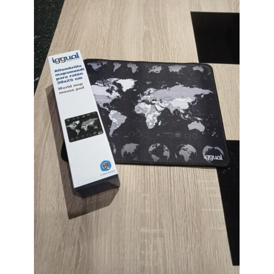 | Caracterí;sticas | - iggual Alfombrilla mapamundi rató;n 30x25 cm - Tamañ;o: 300 × 250 mm - Ligero: 3 mm de grosor - Diseñ;ada para rató;n - Versá;til: para gaming y trabajo - Bordes cosidos reforzados - Impresió;n de alta calidad - Fá;cil de limpiar - Superficie suave - Alta elasticidad y durabilidad - Base de caucho antideslizante |
