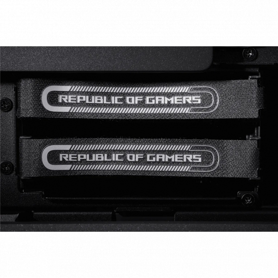 Entre la bandeja de la placa base y la parte frontal del chasis se encuentra una innovadora zona de instalación vertical que puede cubrir una variedad de necesidades. Los constructores pueden montar varios ventiladores de sistema y SSD de 2,5 pulgadas, o un radiador de 360 mm, un cuadro de distribución de refrigeración líquida o un panel de iluminación temático ROG.