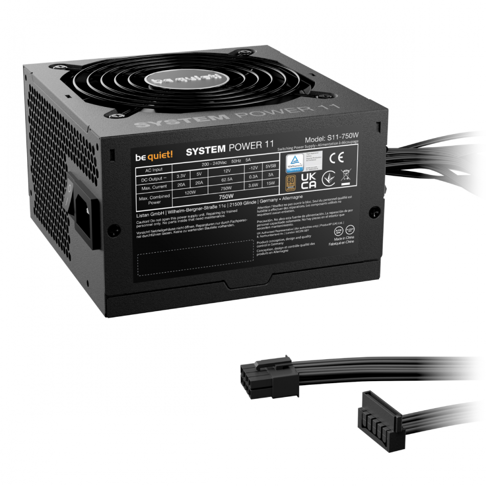 System Power 11 750 W está equipada con un ventilador de calidad de 120mm controlado por temperatura. Ofrece el funcionamiento silencioso por el que be quiet! es conocido, proporcionando una notable tranquilidad a este nivel de precio.