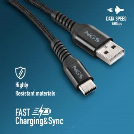 Caracterí;sticas | - Cable USB-A a USB-C - Cable trenzado + carcasa de aleació;n de aluminio - Nylon trenzado - Transmisió;n de datos: 480 bps USB 2.0 - Voltaje y corriente: 5V 2.4A - Longitud del cable: 1 metro |