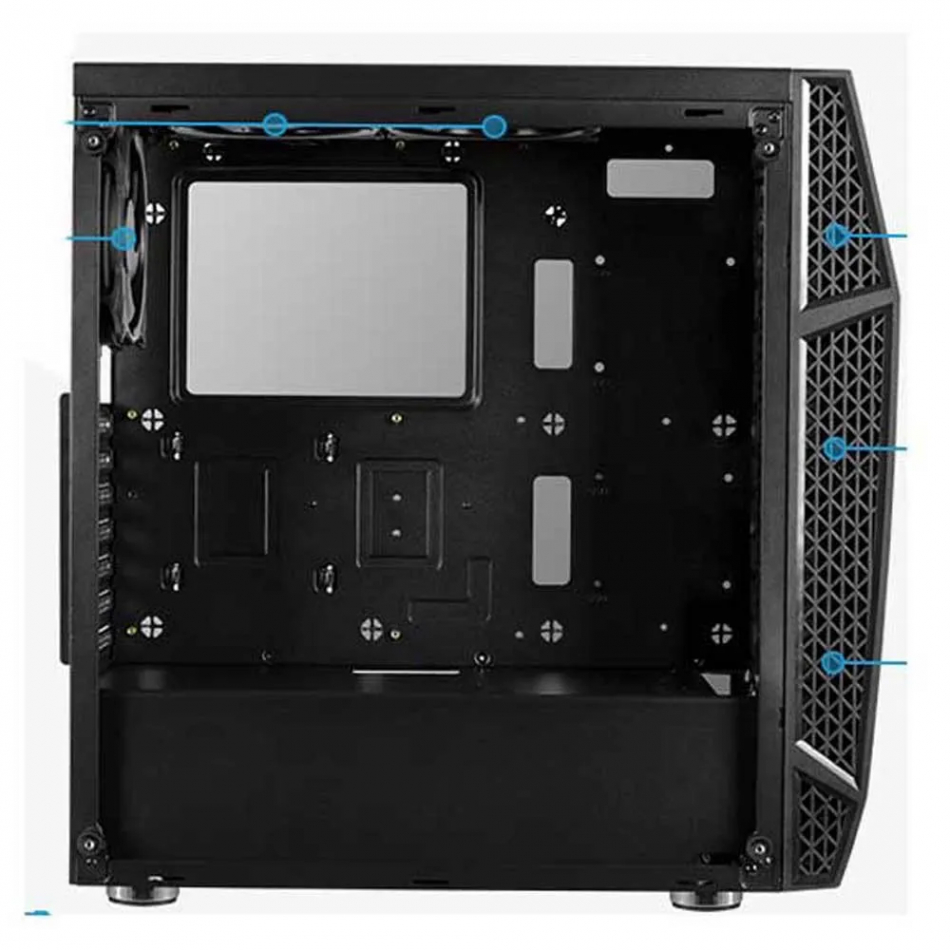 Soporta refrigeración por aire en la parte superior, delantera y trasera de la carcasa lo que ayuda mejorar el rendimiento de refrigeración.