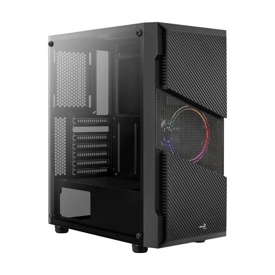 Caja de torre media de alto rendimiento con un diseño de panel frontal de malla para mayor flujo de aire y ventilación. El panel frontal estilo fibra de carbono brinda una apariencia y sensación futuristas a su configuración de juego. Viene equipado con un panel lateral de vidrio templado completo para mostrar el interior de su plataforma. Viene equipado con el ventilador Saturn 12 FRGB con iluminación RGB fija para crear un efecto de iluminación estática, agregando un estilo elegante a su equipo.