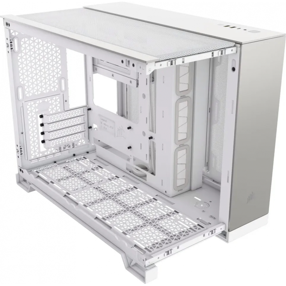Este chasis para PC micro-ATX de dos cámaras CORSAIR 2500X incluye el montaje de fábrica de paneles Elite para comenzar su diseño con estilo, con paneles fabricados por completo en malla para ofrecer un flujo de aire excepcional y un diseño de doble cámara para un equipo organizado e impresionante.