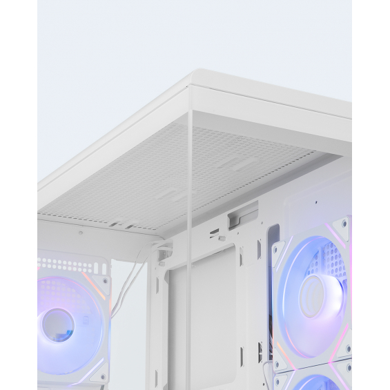 La no inclusión de fuente de alimentación brinda libertad para elegir modelos modulares y ajustados al consumo real del sistema, optimizando la eficiencia energética y la facilidad de montaje. El panel superior permite radiadores de 120, 240, 280 o 360 mm , admitiendo configuraciones de refrigeración líquida de alto caudal destinadas tanto a overclockers como a usuarios profesionales que requieran absoluto control térmico.