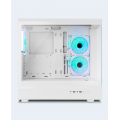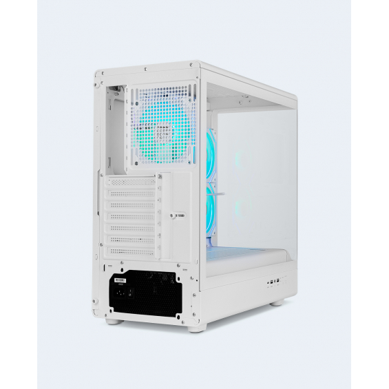 Esta semitorre está optimizada para equipos de alto rendimiento gráfico y térmico : admite tarjetas gráficas de hasta 420 mm y refrigeración líquida en el panel superior con radiadores de hasta 360 mm. La integración de tres ventiladores ARGB de 120 mm (dos frontales y uno trasero, preinstalados) y la capacidad para instalar hasta nueve ventiladores de 120 mm en total, ofrece un excepcional flujo de aire interno para mantener temperaturas estables incluso bajo cargas extremas.
