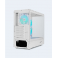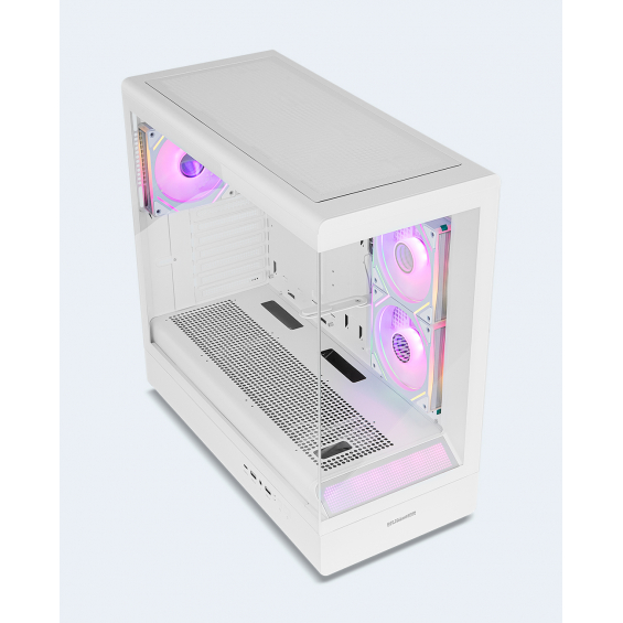 El diseño minimalista y la zona ARGB frontal elevan la estética general del chasis, permitiendo personalización visual con efectos multicolor sincronizables. El panel lateral y frontal sin marco, fabricados en vidrio templado, proporcionan acceso visual total al hardware, facilitando la verificación de un ensamblaje profesional y la gestión avanzada del cableado interno ( 21 mm de espacio dedicado a canalización de cables para un acabado limpio y eficaz).