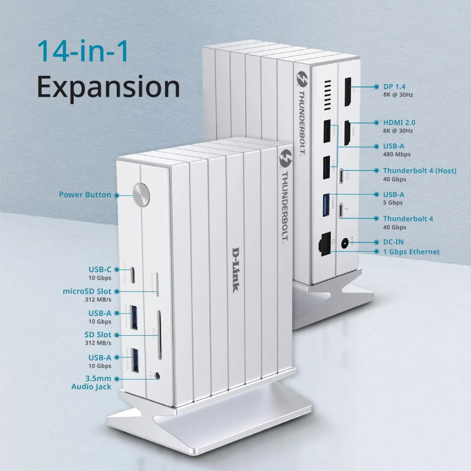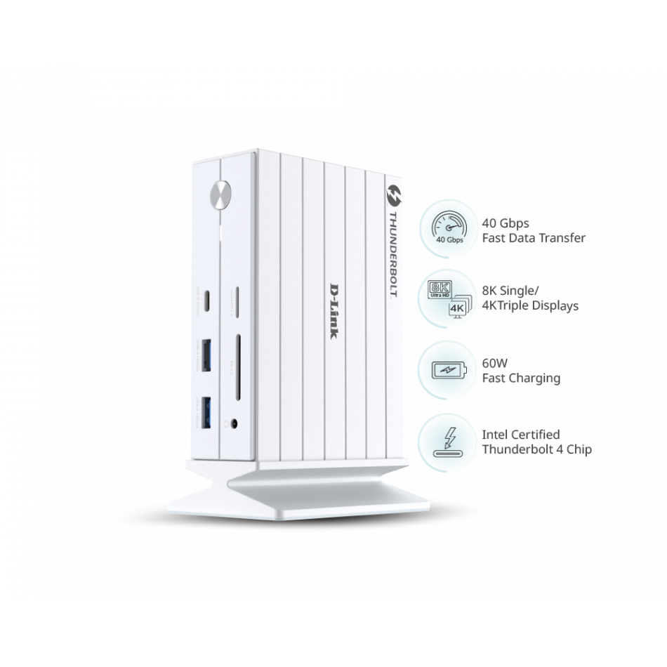 | Características | - Consumo maximo: adaptador de corriente 135 W (24 V / 5,63 A) Puertos de video - 1 x HDMI 2.1 (7680x4320@30Hz) - 1 x DP 1.4 (7680x4320@30Hz) - 1 x Thunderbolt 4 Puerto de red - 1 x RJ45 (10/100/1000 Base-T) Puertos USB y Thunderbolt - Thunderbolt 4: 40 Gbps con 15 W (5 V @ 3 A) de salida de energia (multi-functional connector) - 1 x USB 3.1 Tipo C (10 Gbps) - 2 x USB 3.1 Tipo A (10 Gbps) - 1 x USB 3.0 Tipo A (5 Gbps) - 2 x USB 2.0 Tipo A (480 Mbps) Ranuras para tarjetas - SD y microSD UHS-II; capacidad desde 32 GB a 2 TB Conector de audio - Jack combo 3,5 mm: soporta canal izquierdo/derecho y microfono Conector - Thunderbolt 4 (60 W): 40 Gbps con USB Power Delivery (PD 3.0) para carga rapida de 60 W Resolucion de pantalla - HDMI 2.1: 8K (7680x4320@30Hz) o 4K (3840x2160@60Hz) para doble y triple pantalla - DP 1.4: 8K (7680x4320@30Hz) o 4K (3840x2160@60Hz) para doble y triple pantalla - Thunderbolt 4: 8K (7680x4320@30Hz) o 4K (3840x2160@60Hz) para doble y triple pantalla Sistemas operativos - macOS - Windows 10 - Windows 11 - Android Temperaturas de funcionamiento - Funcionamiento: 0 a 40 C - Almacenamiento: -20 a 65 C Humedad - Funcionamiento: 10% a 90% sin condensacion - Almacenamiento: 5% a 95% sin condensacion Certificaciones - FCC - CE Dimensiones y peso - 188 x 40 x 125 mm - 1,2 kg Contenido - DUF-E01 14-in-1 Thunderbolt 4 Docking Station - Cable Thunderbolt 4 - Adaptador de corriente - Guia de instalacion rapida |