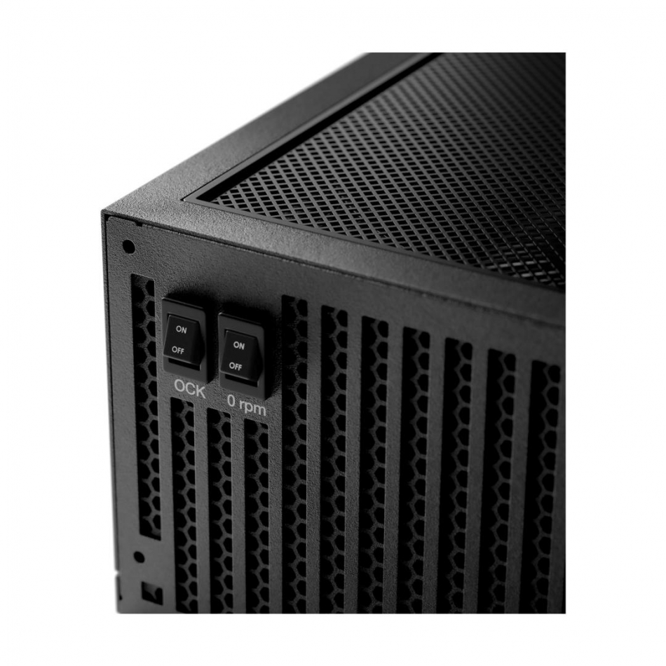 Un botón en la parte posterior de la fuente de alimentación permite cambiar entre un modo de enfriamiento activo equilibrado, donde el ventilador Silent Wings gira todo el tiempo, o un modo semipasivo, donde el ventilador no gira bajo poca carga y solo se enciende cuando se requiere enfriamiento adicional para operaciones más exigentes. Un ajuste posterior a la ventilación mantiene el ventilador girando después de enfriarse durante un corto período de 2 a 5 minutos para evitar arranques y paradas frecuentes y ruidosos.