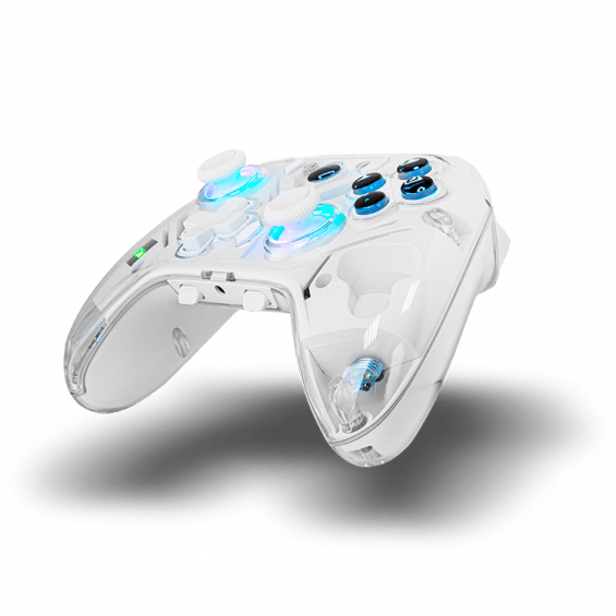 Krom Krystal es un mando inalámbrico que cuenta con tecnología Bluetooth 5.0 para que puedas jugar con total libertad. Este distintivo gamepad transparente llega para hacer potenciar tus entrenamientos, ya que está pensado para la competición.