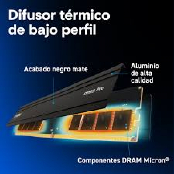 - Los módulos de memoria de sobremesa Crucial DDR5 (UDIMM) pueden alcanzar las velocidades nominales con Intel XMP 3.0 o AMD EXPOTM activados en la configuración de la UEFI/BIOS. Indicada para todos los módulos de memoria de sobremesa Crucial DDR5 (UDIMM), excepto la memoria de sobremesa Crucial DDR5-4800, que solo es compatible con Intel® XMP 3.0. Se basa en las especificaciones publicadas de la competencia para la memoria DDR5 a fecha de agosto de 2023. Modificar la tensión o la frecuencia de reloj más allá de las velocidades y el tiempo publicitados (overclocking) podría dañar los componentes del ordenador y anular la garantía de Crucial. Micron rechaza toda responsabilidad ante tales daños.