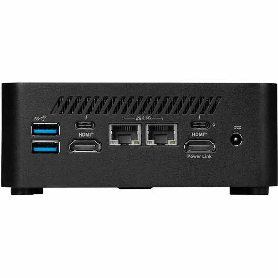 Puertos E/S | Frontales - 1 x USB 10 Gbps Tipo A1 - 1 x USB 10 Gbps Tipo A2 - 1 x USB 10 Gbps Tipo C Traseros - 1 x conector CC - 1 x salida HDMI (compatible con 4K a 60 Hz, segú;n lo especificado en HDMI 2.1)compatible con MSI Power Link - 2 x puertos RJ45 LAN (2,5 G) - 1 x salida HDMI (compatible con 4K a 60 Hz, segú;n lo especificado en HDMI 2.1) - 2 x puertos RJ45 (2,5 G) - 1 x salida HDMI (compatible con 4K a 60 Hz, segú;n lo especificado en HDMI 2.1) - 1 x puerto Thunderbolt 4 (DP 1.4 en modo alternativo hasta 4K a 60 Hz / Salida PD de 12 W y 15 W) - 1 x puerto Thunderbolt 4 (DP 1.4 en modo alternativo hasta 4K a 60 Hz / Salida PD de 13 W y 15 W) |