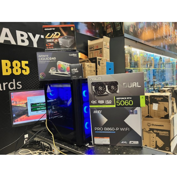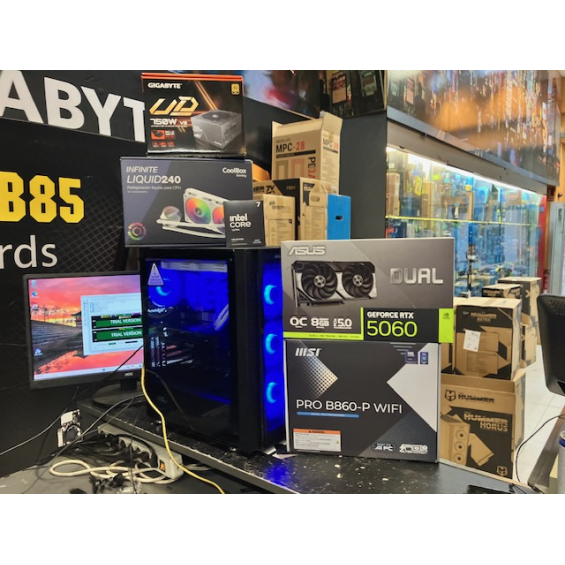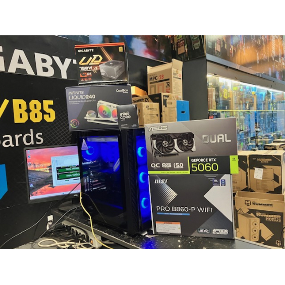 Ordenador de sobremesa MODULAR Procesador Intel® Core™ Ultra 7 265KF (caché de 30 MB, hasta 5,50 GHz) - Placa Msi Pro B860-P Wifi - Memoria 32GB DDR5 5600Mhz - SSD M.2 Nvme 1TB WD SN5100 7100Mbbps - VGA Nvidia RTX 5060 8GB GDDR7 Msi / Gigabyte / PNY / Asus Depende de disponibilidad - Fuente Atx Gigabyte 750W GP-UD750GM PG5 V2 Atx 3.0 80+ Gold - Caja Atx Nox Hummer Horus - Refrigeración Líquida Coolbox Infinity 240 - 3 Años de garantía