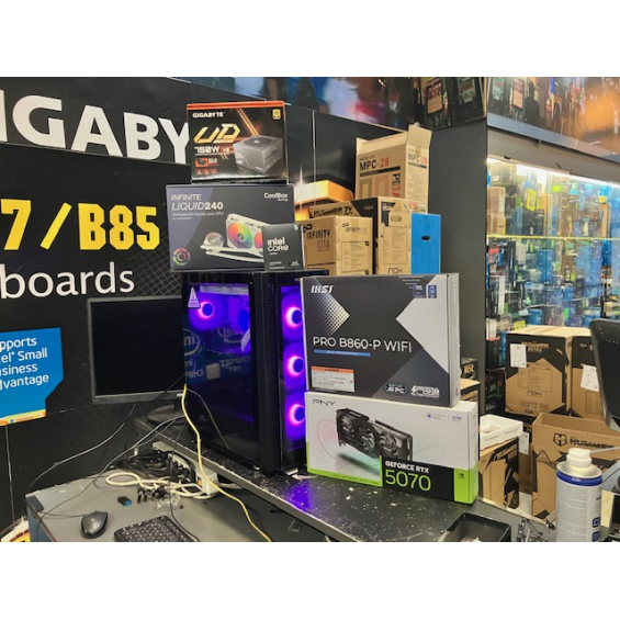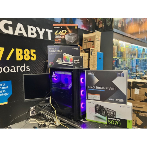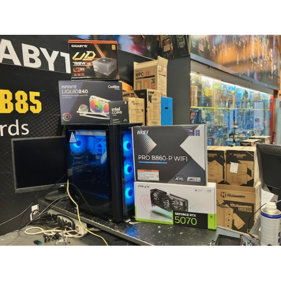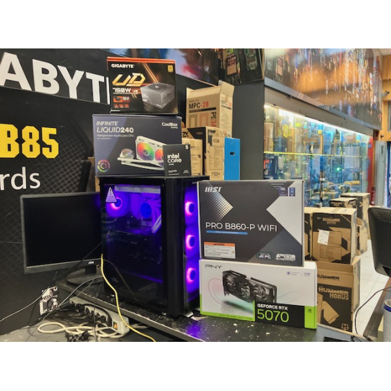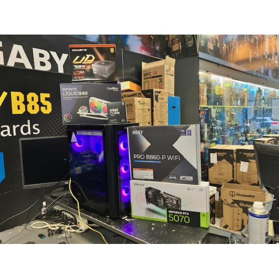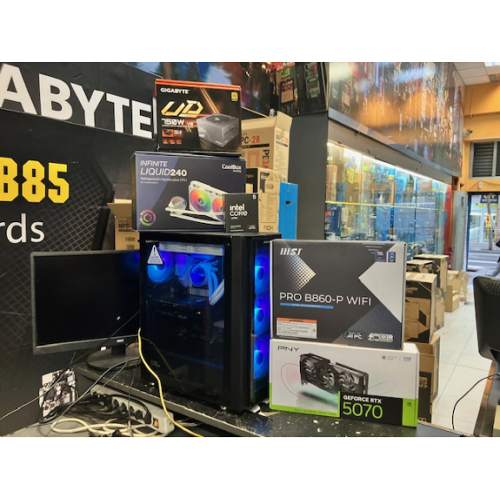 Ordenador de sobremesa MODULAR Procesador Intel® Core™ Ultra 5 245KF (caché de 24 M, hasta 5,20 GHz) - Placa Msi Pro B860-P Wifi - Memoria 32GB DDR5 5600Mhz - SSD M.2 Nvme 1TB WD SN5100 7100Mbbps - VGA Nvidia RTX 5070 12GB GDDR7 Msi / Gigabyte / PNY / Asus Depende de disponibilidad. - Fuente Atx Gigabyte 750W GP-UD750GM PG5 V2 Atx 3.0 80+ Gold - Caja Atx Nox Hummer Horus - Refrigeración Líquida Coolbox Infinity 240 - 3 Años de garantía