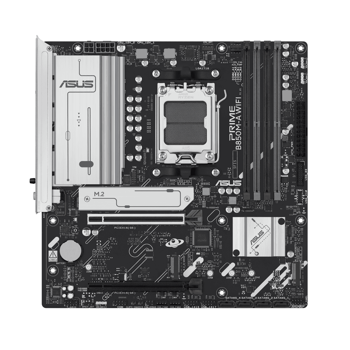 Desata la potencia de los procesadores AMD Ryzen de última generación con la ASUS PRIME B850M-A WIFI , diseñada para exigentes entusiastas y creadores que buscan estabilidad, conectividad y rendimiento de vanguardia en formato compacto.