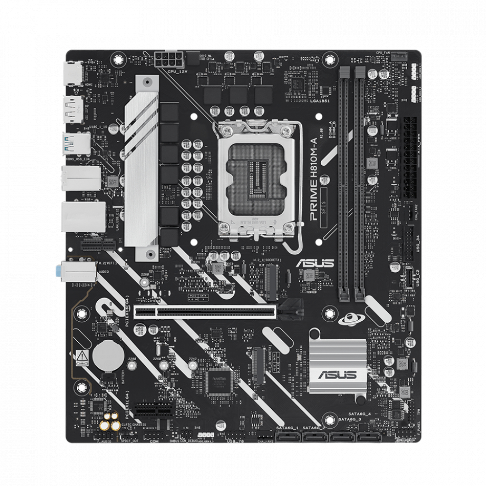 La placa base PRIME H810M-E-CSM está diseñada con un disipador de calor de chipset integrado y una serie de conectores de ventilador híbridos para ayudar a garantizar que su equipo se mantenga fresco y estable bajo cargas de trabajo intensas.