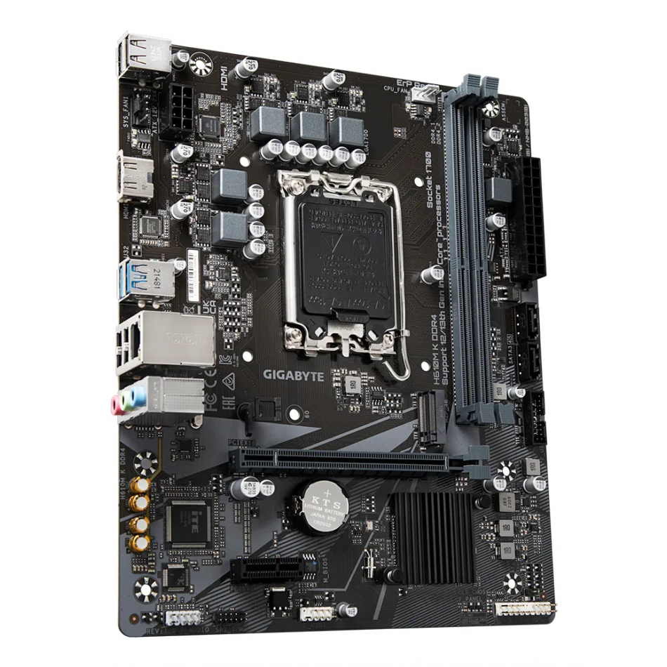 Gigabyte H610M K DDR4 1.0. Fabricante de procesador: Intel, Socket de procesador: LGA 1700, Procesador compatible: Intel® Celeron®, Intel® Core? i3, Intel® Core? i7, Intel® Core? i9, Intel® Pentium® Gold. tipos de memoria compatibles: DDR4-SDRAM, Memoria interna máxima: 64 GB, Tipo de ranuras de memoria: DIMM. Interfaces de disco de almacenamiento soportados: M.2, PCI Express 3.0, SATA. Graphics chipset: Intel, Adaptador gráfico: HD Graphics, Máxima resolución: 4096 x 2160 Pixeles. Tipo de interfaz ethernet: Gigabit Ethernet