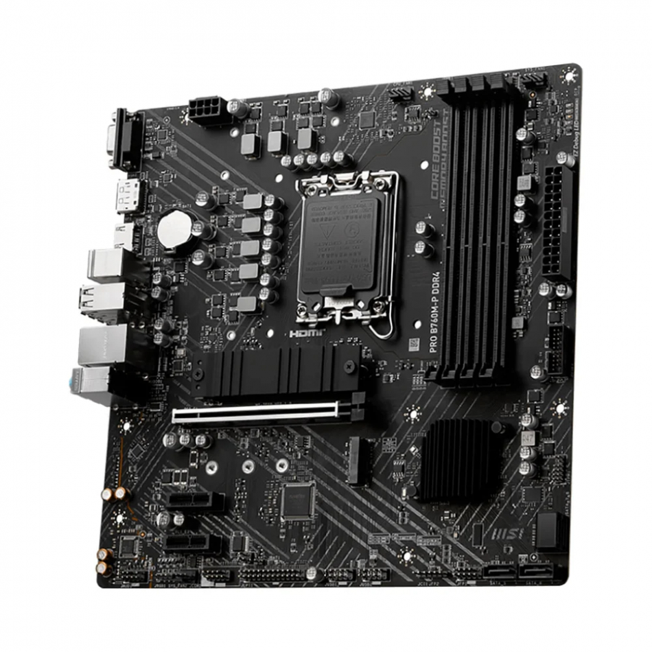 La placa base MSI PRO B760M-P DDR4 diseñada para procesadores híbridos Intel Core de 12ª y 13ª generación es ideal para montar un sistema potente y rentable.Admite procesadores Intel Core de 12ª y 13ª generación, tarjetas gráficas PCI-Express 4.0 16x, PCIe 4.0 M.2 Tarjetas gráficas PCIe 4.0, memoria RAM DDR4 y dispositivos USB 3.1.