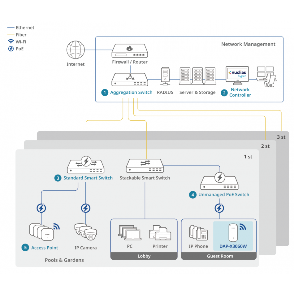| Características | - Gestión mediante Nuclias Connect - Gestión web HTTP/HTTPS - Telnet y SSH - Alimentación PoE 802.3at Temperaturas de funcionamiento - Temperatura operativa: 0 °C a 40 °C - Humedad operativa: 10 %–90 % sin condensación - Humedad de almacenamiento: 5 %–95 % sin condensación Dimensiones - 195,68 × 120,72 × 40,2 mm |