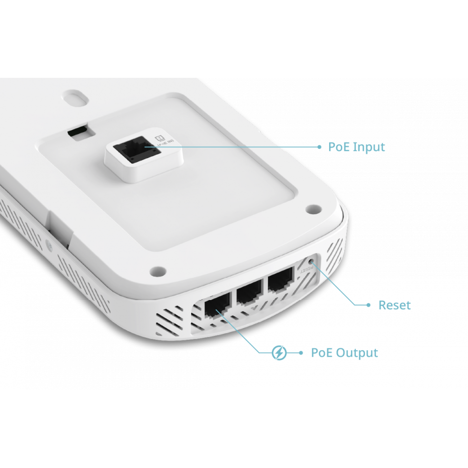 | Puertos | - 1 x Gigabit Ethernet PoE LAN (uplink) - 3 x Gigabit Ethernet LAN (downlink) - 1 x puerto PoE passthrough |