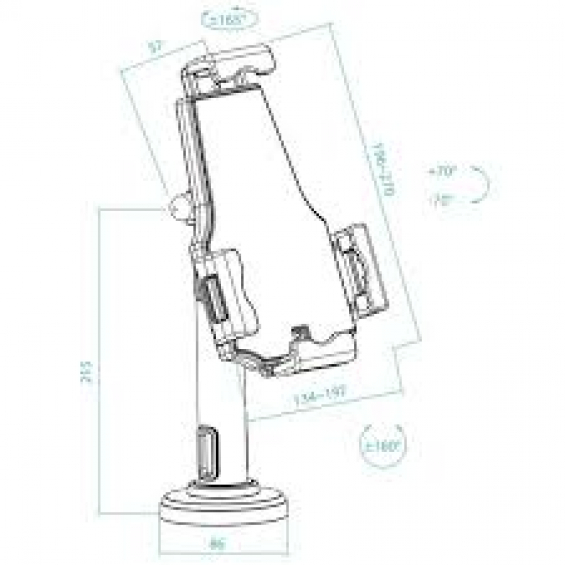 - Ancho del soporte de tablet: mín 134 – máx 197 mm