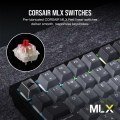Interruptores de Teclas: Intercambiables en caliente. Interruptores mecánicos lineales CORSAIR RED con una fuerza de actuación de 45 g, distancia de pulsación de 1,9 mm y recorrido total de 4 mm. Garantía de 70 millones de pulsaciones.
