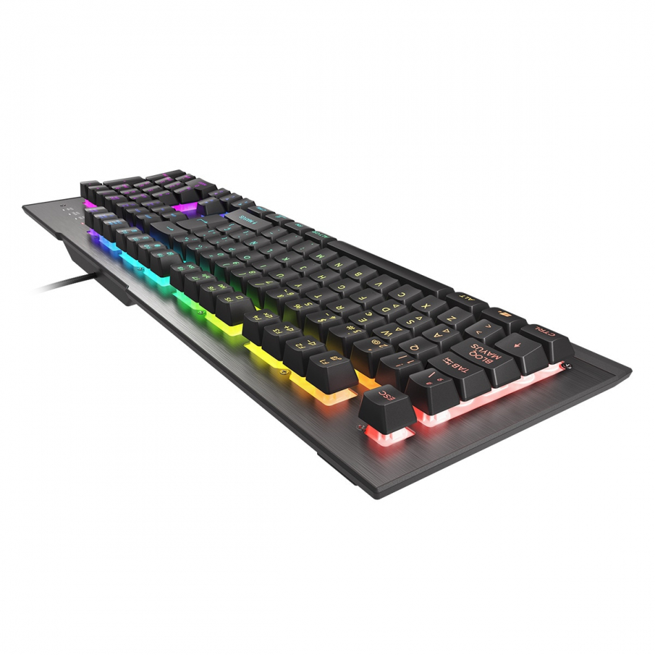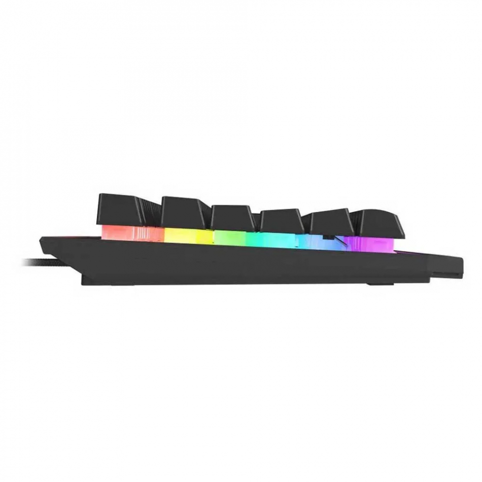 El Rhod RGB 500 está equipado con un mecanismo de membrana silencioso y duradero, caracterizado por una baja cantidad de presión de 55g, un tiempo de respuesta de 8ms y un punto de activación de 2.5mm. La función de bloqueo de la tecla de Windows le permitirá jugar sin minimizar accidentalmente el juego.
