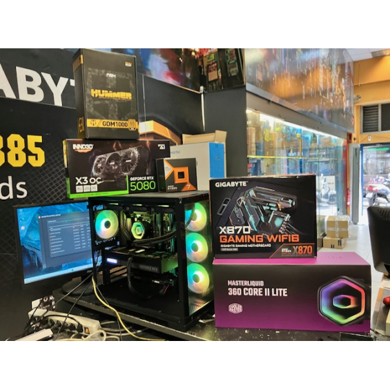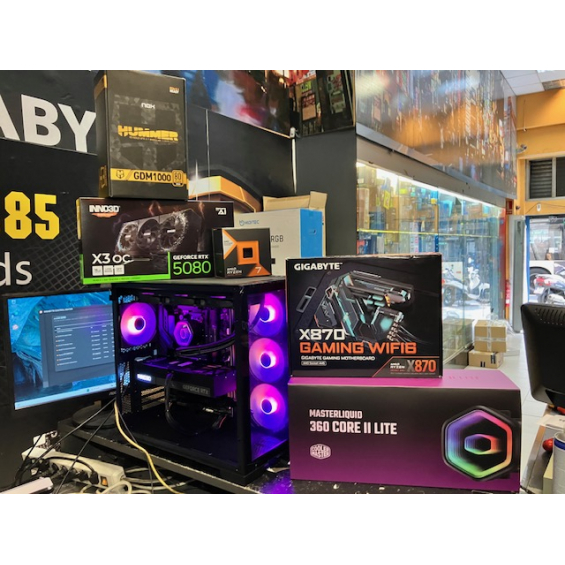 Ordenador Modular 9700- Procesador AMD Ryzen 7 7800X3D (caché de 96 M, hasta 5,0 GHz) - 64GB RAM DDR5 5200Mhz Kingston / Crucial / Corsair - Placa Base Gigabyte X870 Gaming Wifi 6 - Nvidia Gigabyte RTX 5080 16GB GDDR7 Inno3D / Gigabyte - Refrigeración Líquida CoolerMaster Masterliquid 360 - SSD M.2 Nvme 1TB WD SN5100 7100Mbps - Caja Atx Nox Hummer Astra - Fuente Alimentación Nox Hummer 1000W GDM1000 80+ Gold - 3 años garantía.