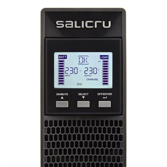 Salida | - Factor de potencia: 0.9 - Forma de onda: Senoidal pura - Tensió;n nominal: 208 / 220 / 230 / 240 V - Precisió;n tensió;n (modo baterí;a): ±1,5% - Distorsió;n armó;nica total (THDv): <2% carga lineal / <5% carga no lineal - Frecuencia: 50 / 60 Hz (misma que la entrada) - Precisió;n frecuencia (modo baterí;a): ±0,1 Hz Sobrecarga - Modo Online: <120% apagado a los 5 min / <150% apagado a los 10 s - Modo baterí;a: <120% apagado a 1 min / <150% apagado a los 10 s - Tomas programables: Sí;, para cargas crí;ticas / no crí;ticas (4/4) |