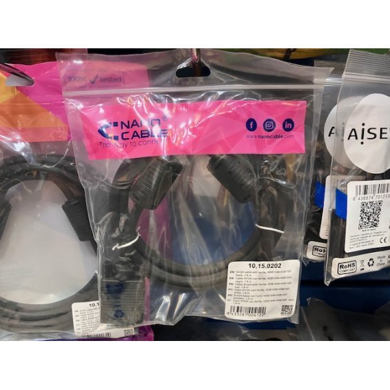 | Caracterí;sticas | - Conector tipo D-sub HDB15 macho en extremo y conector tipo D-sub HDB15 hembra en otro - 3 hilos coaxiales (doble apantallado) para señ;ales de color de alta frecuencia má;s 4 hilos adicionales para la sincronizació;n. - Doble apantallado para todos los hilos para evitar pé;rdida de datos e interferencias electromagné;ticas (EMI). - Incluye ademá;s ferrita en ambos extremos para evitar interferencias de alta frecuencia. - Resolució;n má;xima 2048 X 1536 - Es un cable perfecto que proporciona una imagen perfecta - Longitud: 1.8 metros - Color: Negro - NormativaS: RoHS - Test de Funcionamiento: 100% testado |