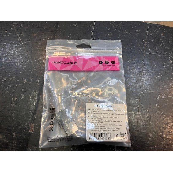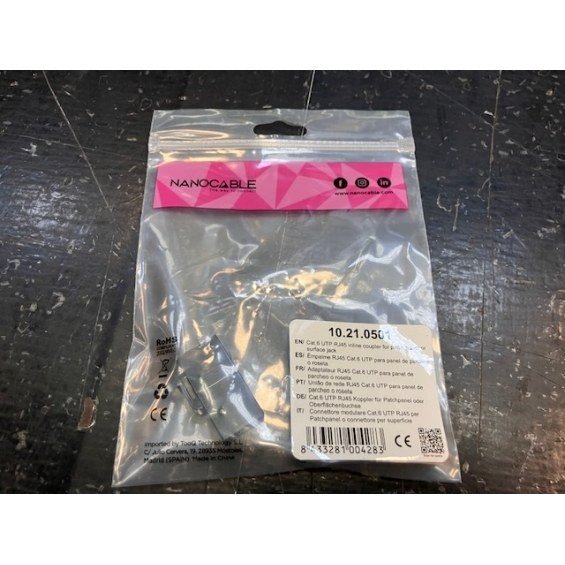 | Características | - Permite conectar 2 cables latiguillos CAT6 RJ45 macho / macho para alargar el enlace de red - Test de Funcionamiento: 100% testado - NormativaS: RoHS - Color: Beige Contenido - 1 x Empalme rj45 cat.6 utp |